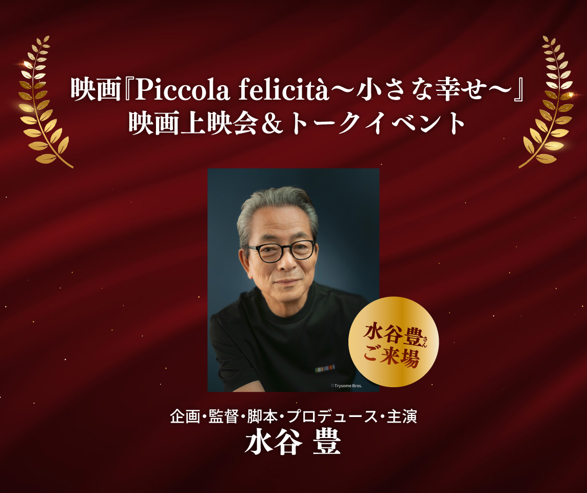 【イントロダクション】ーPiccola felicità(ピッコラ・フェリチタ)ー それはイタリア語で「小さな幸せ」という意味。定年間近のファミレス店長、離婚危機の夫婦、隠れ家ホテルの客とホテルマン、人生の岐路に立つ3組が辿り着く思いもよらぬ結末とは…..水谷豊監督が独創的なアイディアで描く新感覚のオムニバス映画。